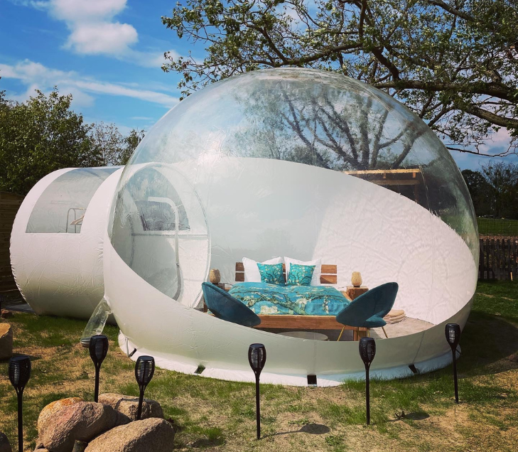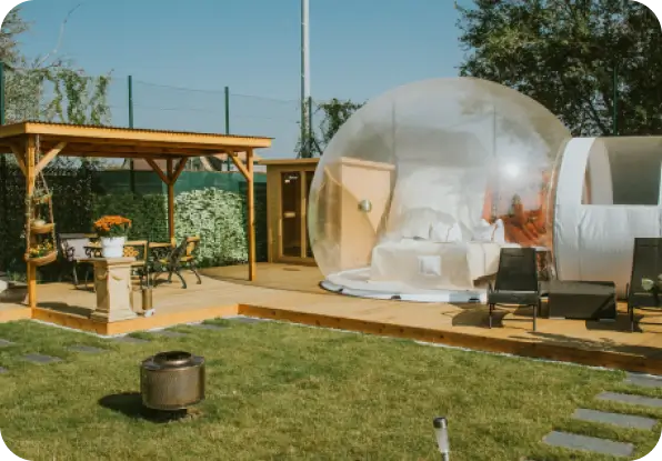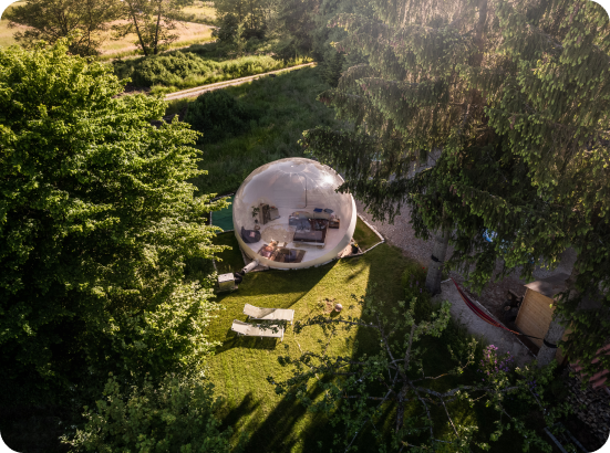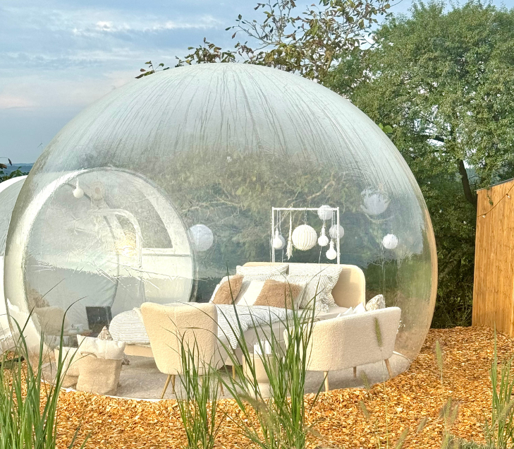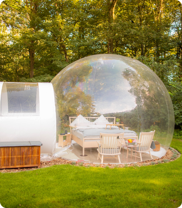 Luxuriös, naturnah und einzigartig – eine Übernachtung in einem Bubble Tent ist weit mehr als ein gewöhnlicher Urlaub. Anders als beim klassischen Camping bieten unsere eleganten und komfortablen Bubbles großzügigen Raum und stilvolle Gemütlichkeit. Dank der vollständig transparenten Hülle verschwimmen die Grenzen zwischen Innen- und Außenwelt, sodass du dich eins mit der atemberaubenden Natur fühlst, die dich umgibt. Und wenn die Nacht hereinbricht, erwartet dich ein unvergesslicher Blick auf den funkelnden Sternenhimmel – mehr als nur 5 Sterne!