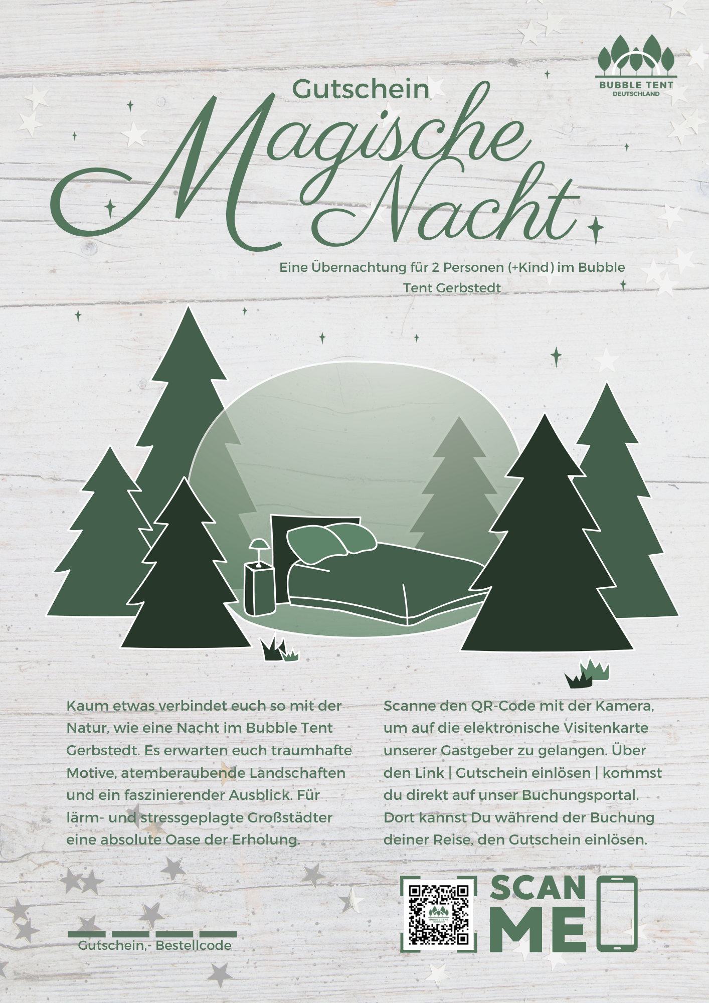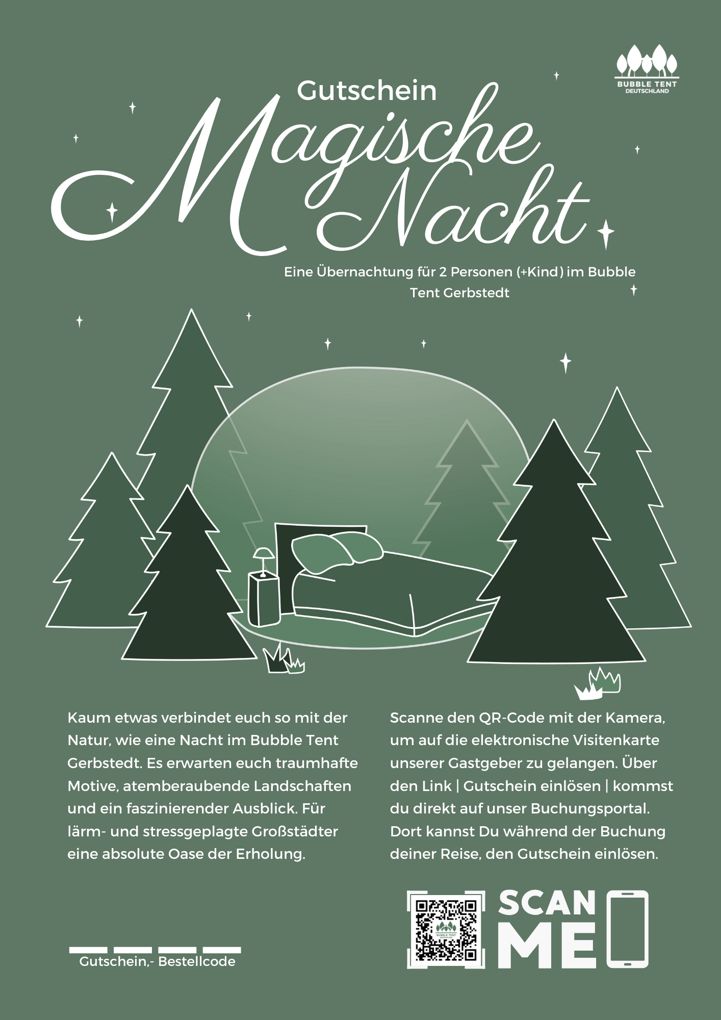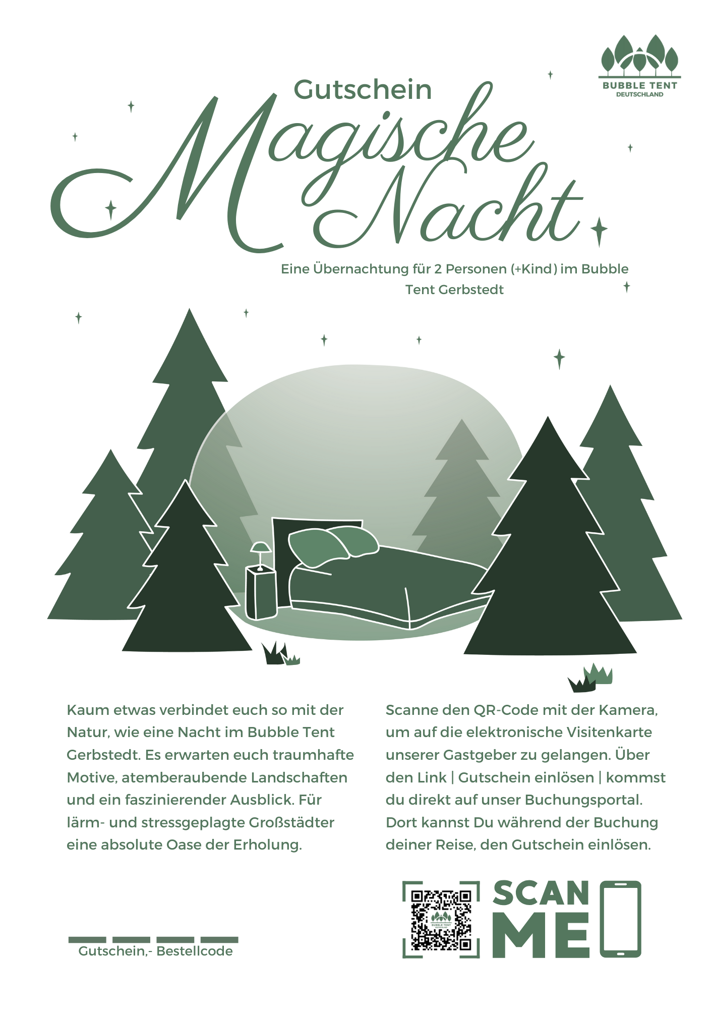 One night for 2 persons (+child) including breakfast in Bubble Tent Gerbstedt. With flexible date and 3 years validity.
