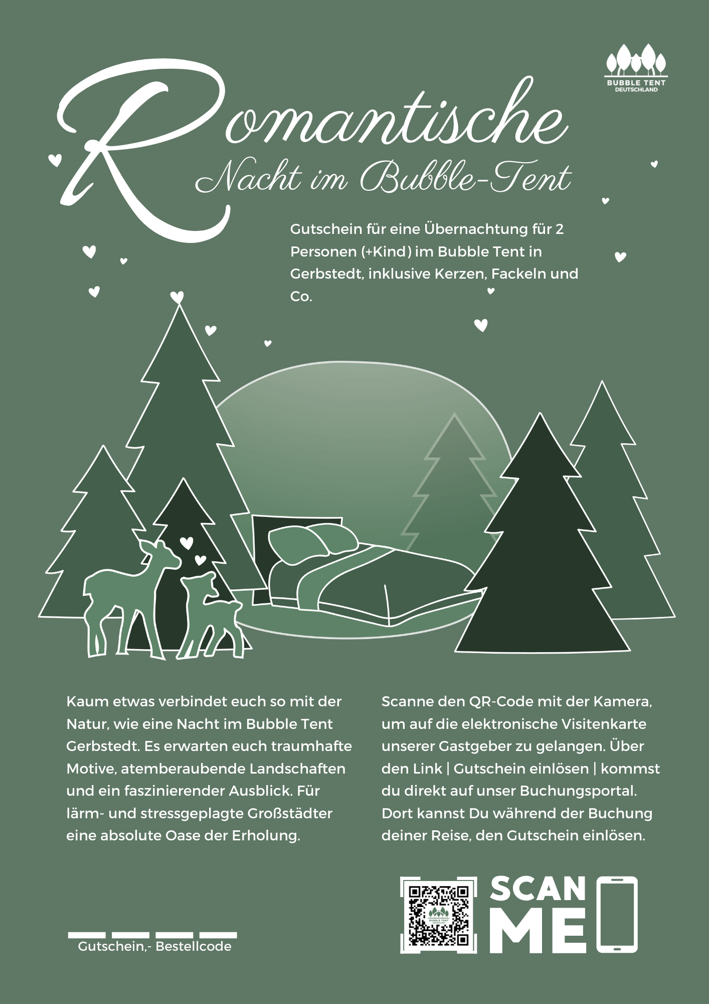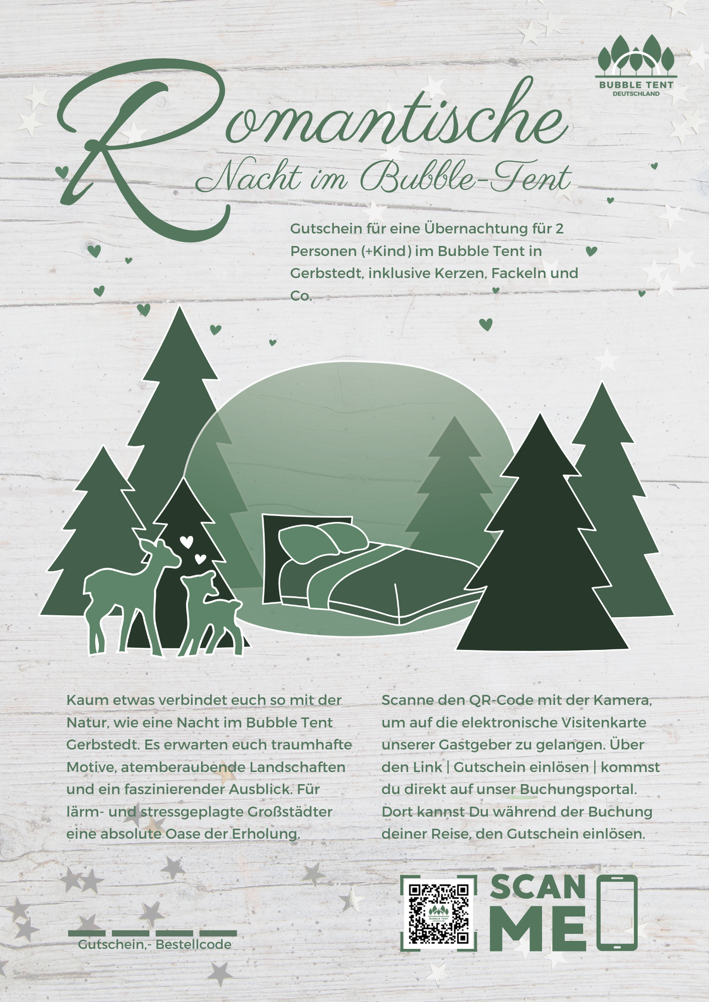 One night for 2 persons (+child) including breakfast in the Bubble Tent Gerbstedt, including candles, torches & co. With flexible date and 3 years validity.