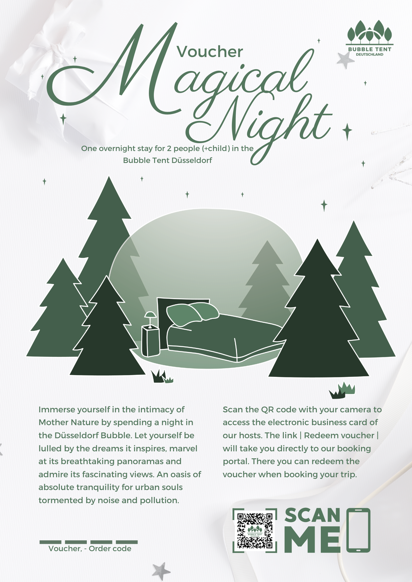 After completing your order you will automatically receive a confirmation email. Immediately after receipt of payment ALL vouchers from the preview will be sent to your email address in PDF format. To give a gift, choose a voucher and write the corresponding order number in the field (order number/voucher code) at the bottom right. The validity of the voucher is determined exclusively by the associated order number