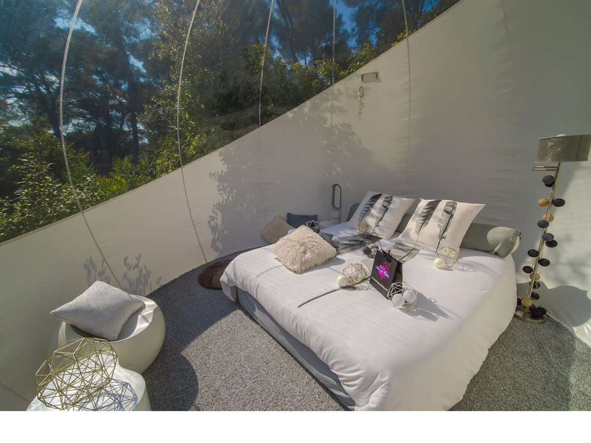 Das Bubble Tent Attrap’Rêves Bulle 1001 in Allauch, gelegen am malerischen Chemin de la Ribassière, bietet euch eine zauberhafte Auszeit in der Natur. Dieses einzigartige Zelt ist euer Tor zu einem Erlebnis, bei dem sich Komfort und Natur nahtlos verbinden. Ausgestattet mit einem gemütliche ......