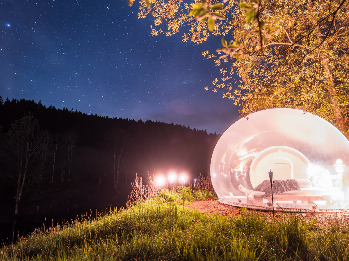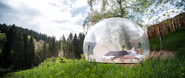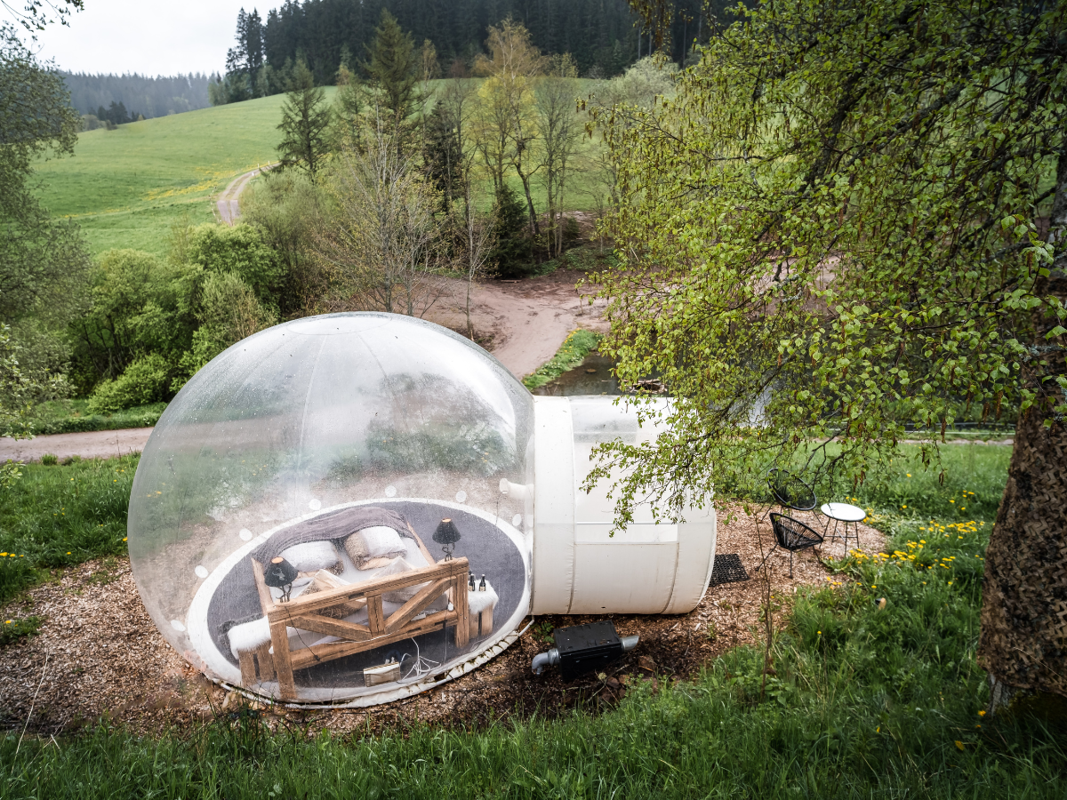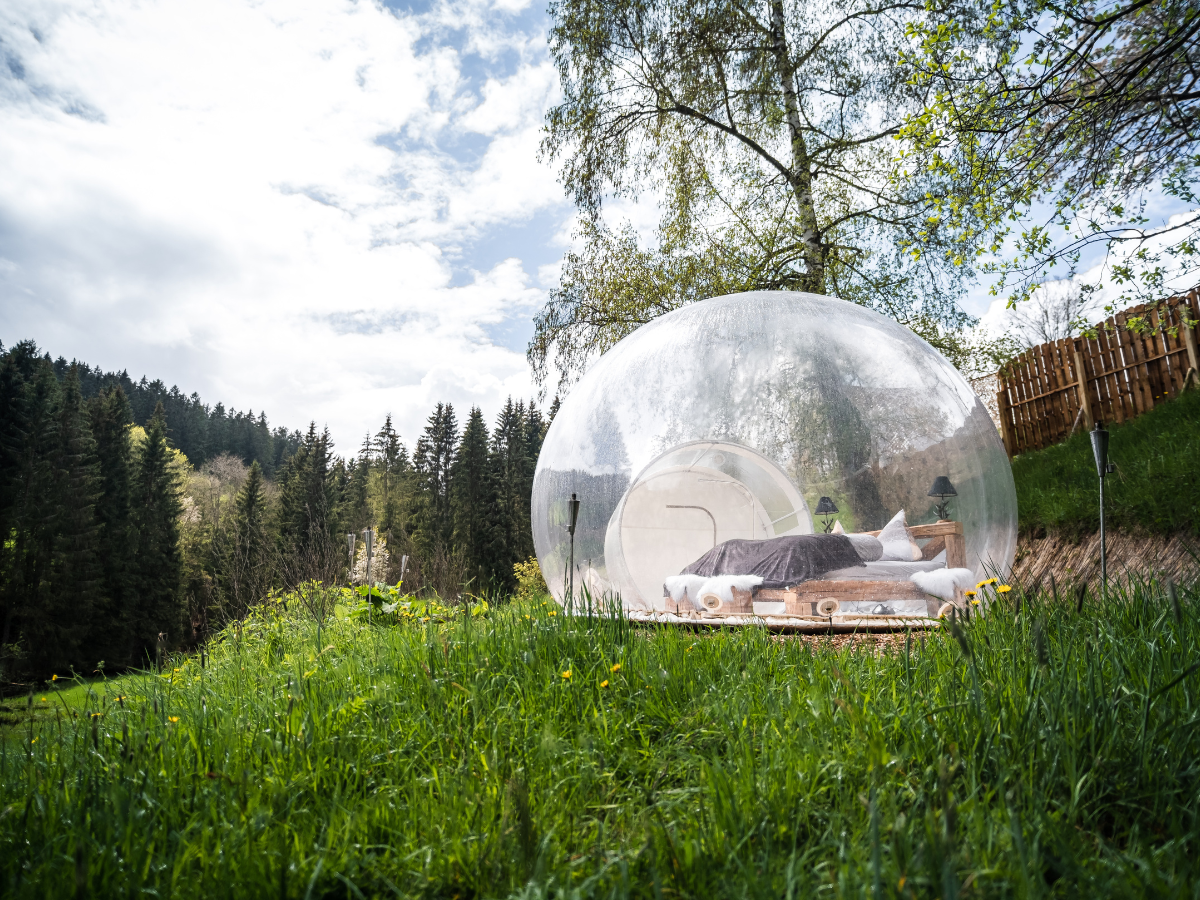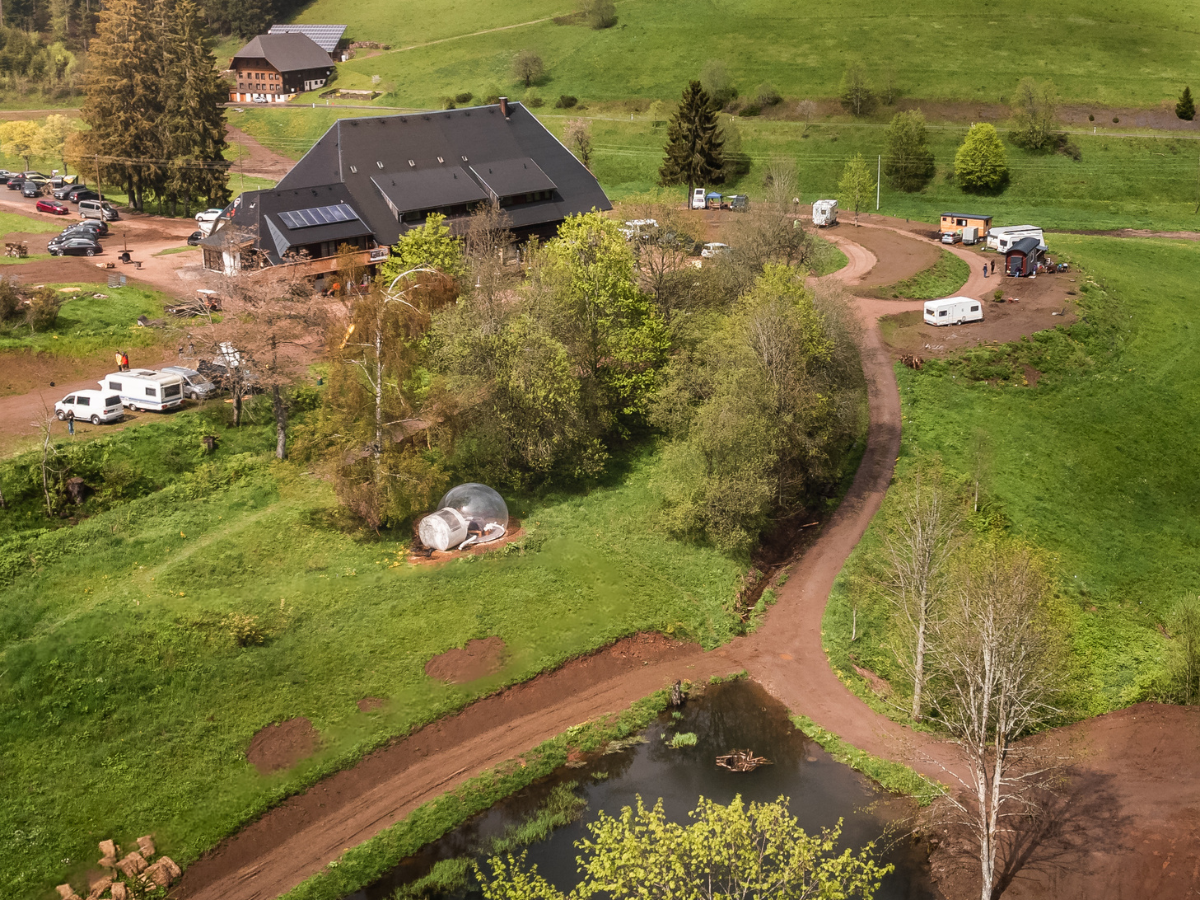 Bitte beachtet, dass es sich hierbei nicht um den klassischen “ruhigen” Bubble Tent Standort handelt. Furtwangen ist der Geheimtipp für alle, die es etwas wilder mögen. Das Bubble Tent selbst steht beim “Wilden Michel” auf einem Plato am Hang, mit Aussicht auf den Camping Schwimmteich. Ideal, um dem täglichen Wahnsinn für kurze Zeit zu entfliehen.